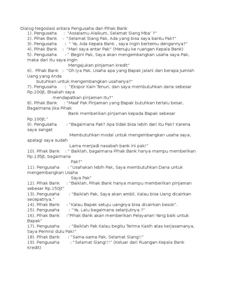 Contoh Teks Negosiasi Pengusaha Dan Pihak Bank Berbagai
