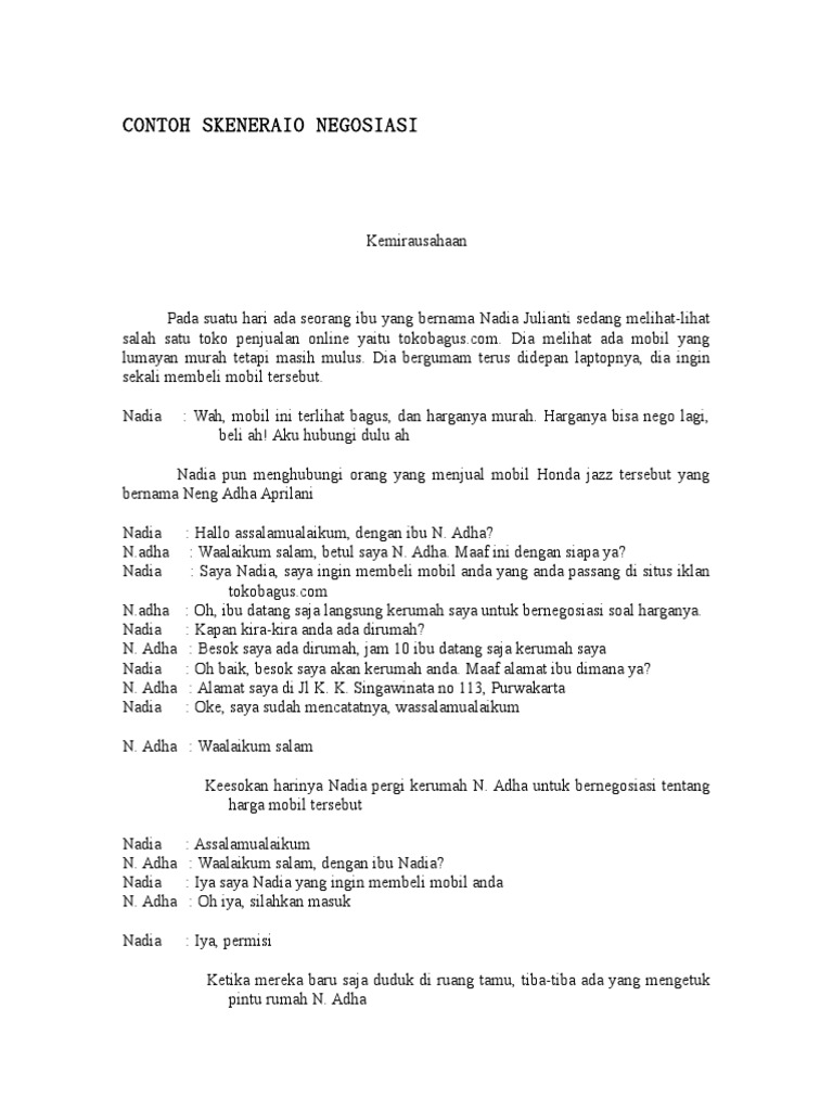 Contoh Teks Negosiasi Dalam Bentuk Narasi Dan Dialog