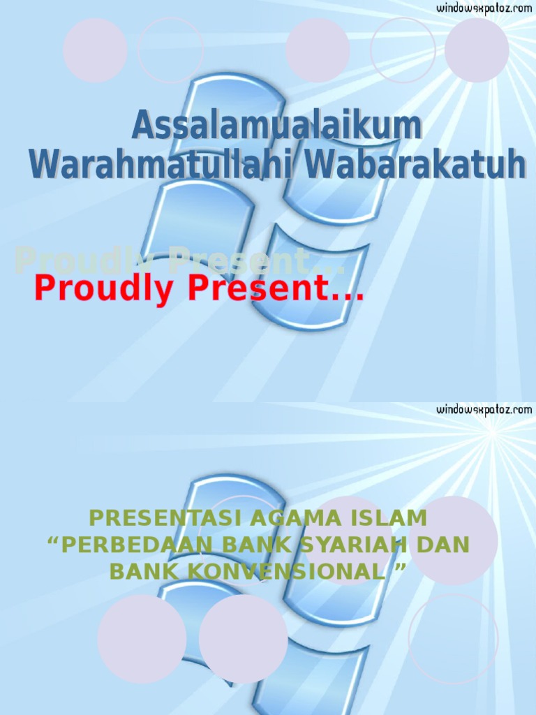 Prinsip perbankan syariah merupakan bagian dari ajaran islam yang berkaitan dengan ekonomi.salah satu prinsip dalam ekonomi islam adalah larangan riba dalam berbagai bentuknya, dan menggunakan sistem antara lain prinsip bagi hasil.dengan prinsip bagi hasil, bank syariah dapat menciptakan iklim investasi yang sehat dan adil karena semua pihak dapat saling berbagi baik keuntungan maupun potensi. Bank syariah dan bank konvensional. Perbedaan bank konvensional dengan bank syariah.